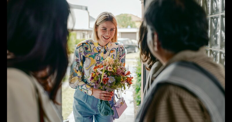 Elif (Jasmin Shakeri, l.) umarmt ihre Mutter (Meral Perin, M.) zur Begrüßung.