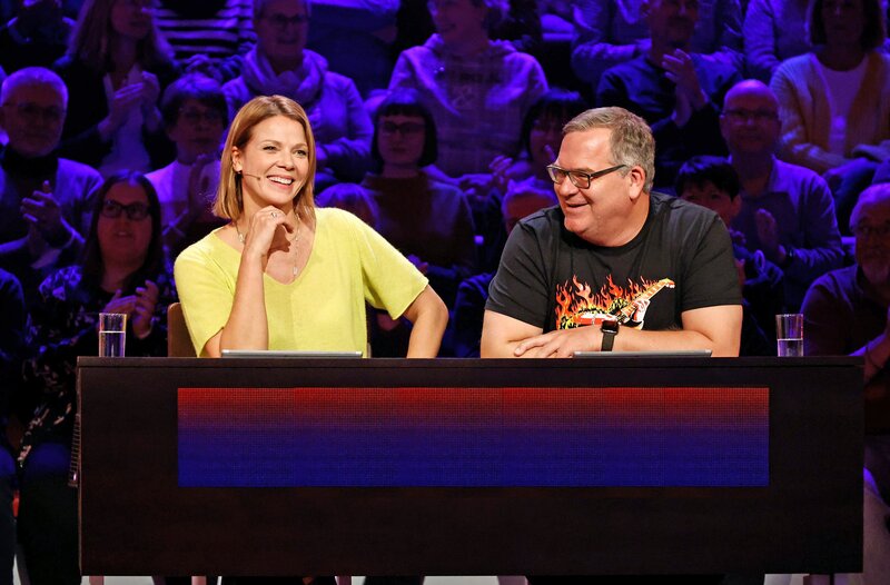 - Rateteam-Kapitän Bernhard Hoëcker (l.) und die Schauspielerin und Sängerin Anna Loos (r.) bilden ein Rateteam.Bild: © ARD/Morris Mac Matzen
