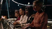 Von links: Lena (Sarah Bauerett), Elif (Jasmin Shakeri), Jo (Salka Weber) und Franzi (Llewellyn Reichman) stehen am Brückengeländer.