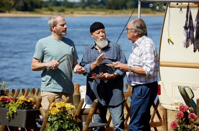 • Im Wohnmobil von Elektriker Mario Matteses hat es wohl einen Kampf gegeben. Was wissen die Nachbarn? Haben sie etwas mitbekommen? Die Rentnercops verhören Wolle und essen lecker Würstchen. V.l.n.r. Wolfgang „Wolle“ Schmidt (Thomas Limpinsel), Reinhard Bielefelder (Bill Mockridge), Klaus Schmitz (Hartmut Volle)