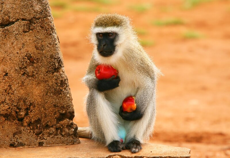 • Portrait of wild hungry monkey . Africa. Kenya. Masai Mara