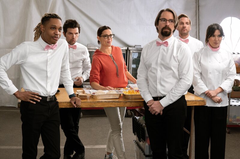 • (v.l.n.r.) Sackson (Tyrel Jackson Williams); Henry Pollard (Adam Scott); Evie Adler (Jennifer Garner); Roman DeBeers (Martin Starr); Kyle Bradway (Ryan Hansen); Lucy Dang (Zoë Chao)