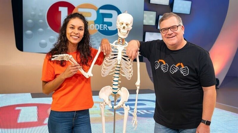 Bei "1, 2 oder 3" geht es auf Biegen und Brechen. Ärztin und YouTuberin Dr. Flojo zeigt Elton, dass Knochen im menschlichen Körper ganz schön was aushalten können. Reporterkind Samuel ist nach Graz gereist und nimmt im Institut für Fahrzeugsicherheit an einem Crashtest teil. Dort erfährt er, was notwendig ist, bevor ein Crashtest-Dummy hinter das Steuer muss. Auch im Tierreich ist das Thema Biegen und Brechen lebenswichtig. Warum können Schwäne beispielsweise ihre Hälse mehr biegen als Giraffen? Ob die Rateteams diese außergewöhnliche Frage beantworten können? Sie kommen aus Tapfheim/Deutschland, Bruck an der Mur/Österreich und Dravsko Polje/Slowenien. In der Quizshow erfahren sie auch, wie man Holz so biegt, dass man daraus Stuhllehnen machen kann. Die Quizshow für die ganze Familie. "1, 2 oder 3" vermittelt Wissen auf unterhaltsame und spielerische Weise. Helle Köpfe sind gefragt und auch flinke Beine. Denn die Rateteams geben ihre Antworten durch das Springen auf eines der Antwortfelder. Bei "1, 2 oder 3" können die Fans zu Hause über HbbTV live mitspielen, und bereits ausgestrahlte Sendungen lassen sich auch online über 12oder3.de oder die ZDFtivi-App beim Videoquiz nachspielen. Wer noch nicht genug hat, kann im Zockerquiz quizzen ohne Ende. Für Vorschulkinder gibt es auf zdftivi.de und in der ZDFtivi-App das Angebot "Moin Piet - Quiz mit Quatsch".