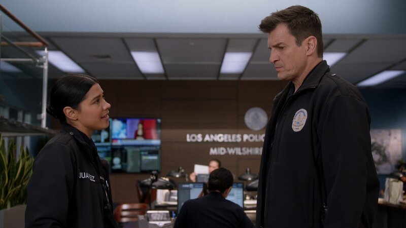 Officer John Nolan (Nathan Fillion) sichert Officer Celina Juarez (Lisseth Chavez) seine volle Unterstützung bei der Aufklärung des Mordes an ihrer Schwester zu.