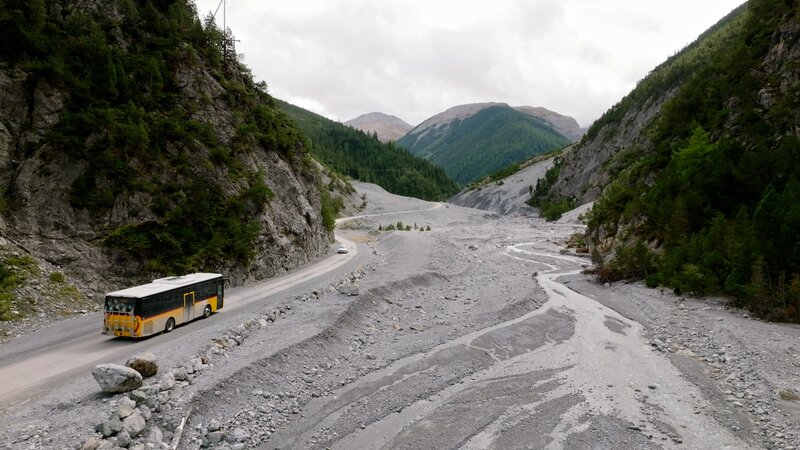 Eine Reise mit dem Postauto durch den Südosten der Schweiz: Die Route führt durch das Unterengadin und endet im Samnauntal. Es ist die einzige Verbindung mit öffentlichen Verkehrsmitteln an die österreichische Grenze.