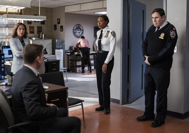 (v.l.n.r.) Detective Tommy Killian (Kevin Rankin); Detective Crystal Morales (Elizabeth Rodriguez); Deputy Inspector Regina Haywood (Amanda Warren); Captain Stan Yenko (Richard Kind)