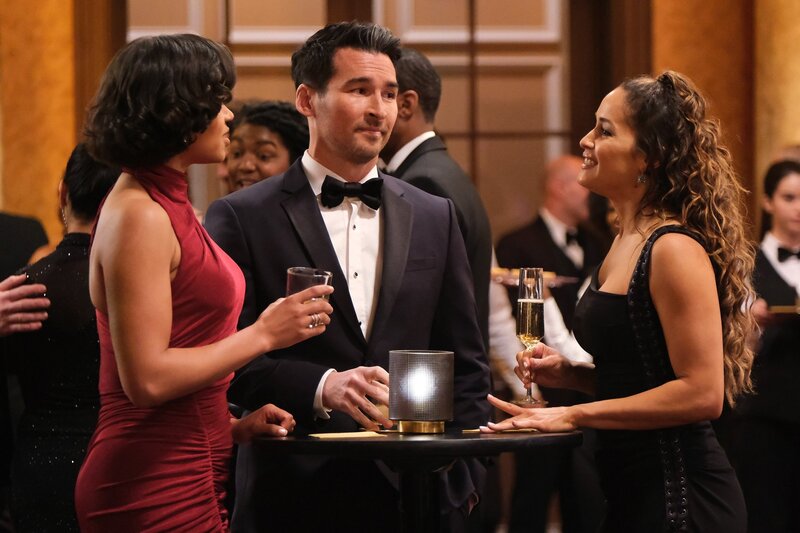 • Station 19 Staffel 6 Folge 18 Die Feuerwehrleute haben sich chic gemacht : Barrett Doss als Victoria Hughes, Jay Hayden als Travis Montgomery, Jaina Lee Ortiz als Andy Herrara
