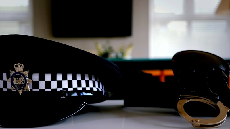 Polizeimütze und Handschellen