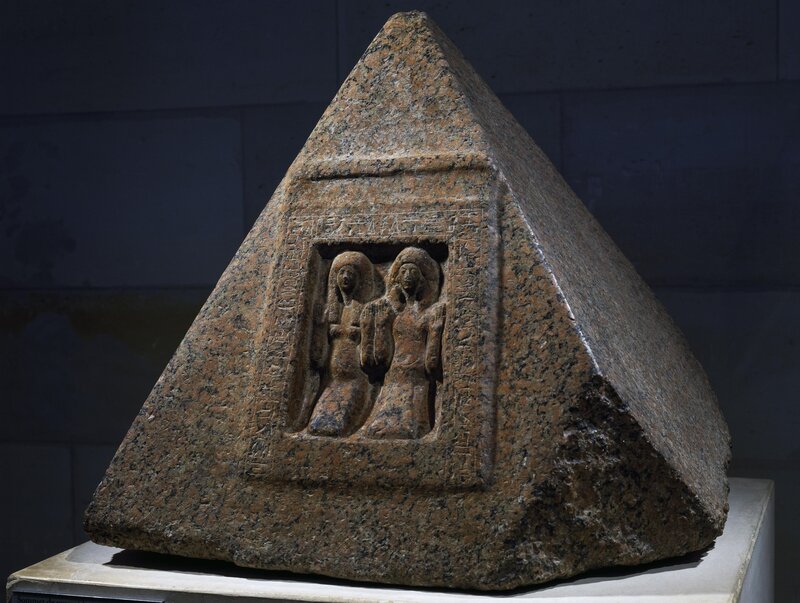 ÄGYPTEN - Pyramidion (Deckstein), Pyramide des Oberverwalters von Memphis Iniouia, 1300 v. Chr., Granit, 63x67,5x70 cm, aus Saqqara. Ägyptische Zivilisation, Neues Reich, Dynastie XVIII-XIX. Paris, Musée du Louvre