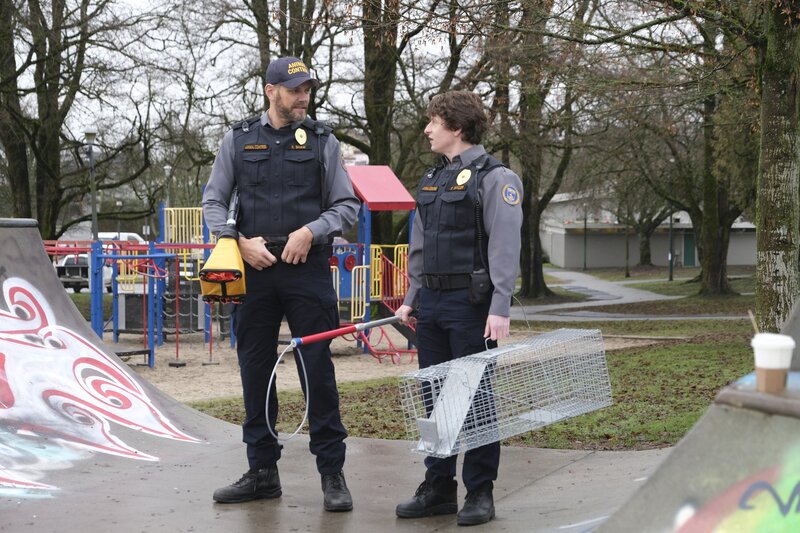 L-R: Frank Shaw (Joel McHale) und Fred 'Shred' Taylor (Michael Rowland)