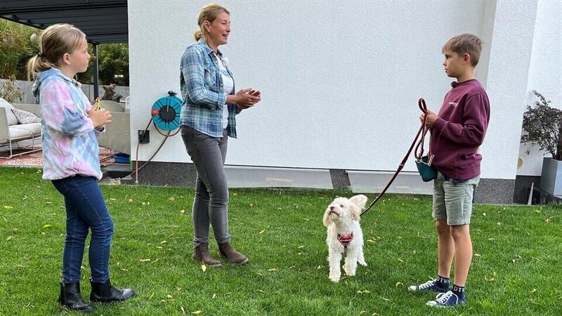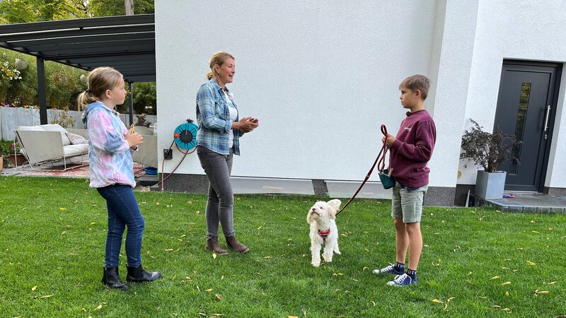 Lorelei und Valentin bekommen von Sabine (2.v.l.) einen Tipp .