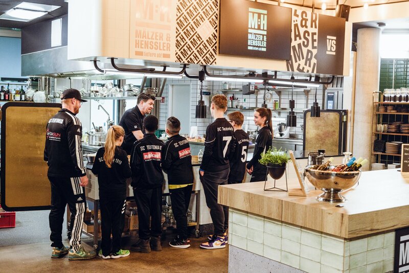 Ein Teil der Kinder-Fußballmannschaft des SC Teutonia mit ihrem Trainer.