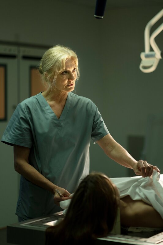 • Jackie (Joely Richardson) zeigt Danny (nicht im Bild) die Leiche, was zu einem Schockmoment für beide führt.