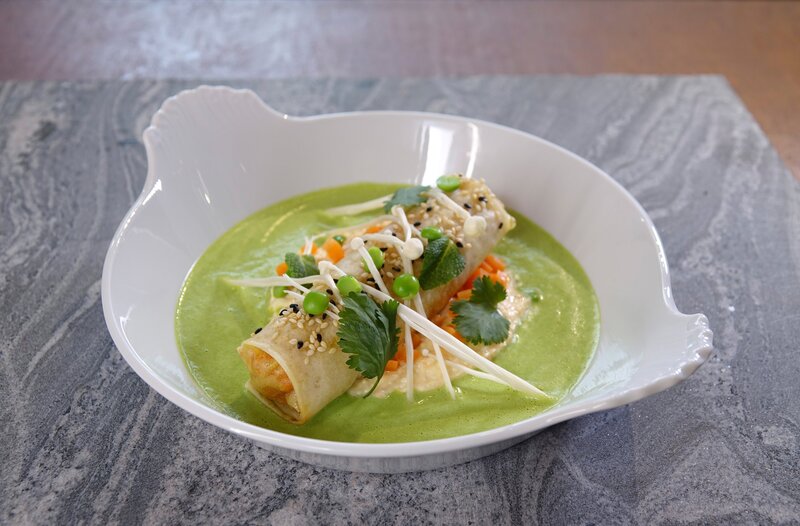 Die Kinderbuch-Illustratorin Manuela Olten zaubert ebenso farbenfrohe wie ungewöhnlich gefüllte Ravioli. Ihr Rezept ist eine Erinnerung an ihre Kindheit. Inspiriert von Manuelas selbstgemachten Nudeltaschen muss Ali nun sein ganzes Können zeigen: Der Starkoch entscheidet sich für Cannelloni, gefüllt mit Karotten, und garniert sein Rezept mit einer wunderbaren Erbsen-Minz-Sauce.