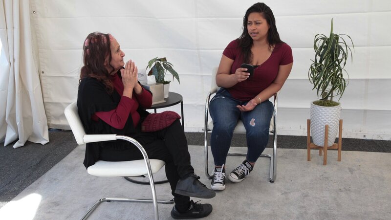 • Dr. Lee talks with Elizabeth Contreras about her fibromatosis on her head.
