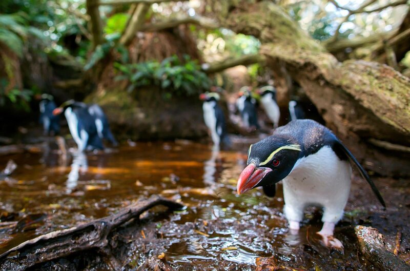 Snarespinguine haben auf Snares Island im Süden Neuseelands mit ihren kleinen Füßen ein Labyrinth aus Wegen in den Wald getreten. Über Stock und Stein legen sie alljährlich bis zu einen Kilometer Strecke zurück, um zu ihrer Brutkolonie im Wald zu gelangen.