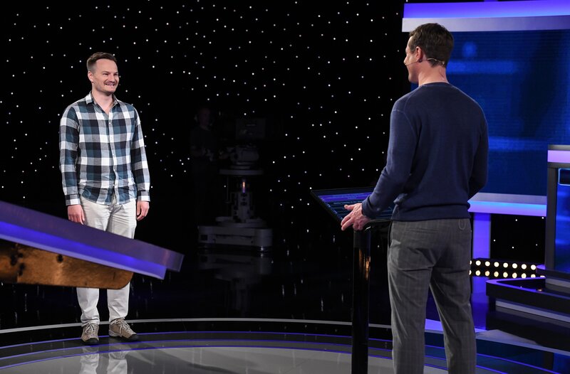 Moderator Alexander Bommes (r.) mit dem Kandidaten Paul Frank Mühlberg (l.).Bild: © ARD/Uwe Ernst