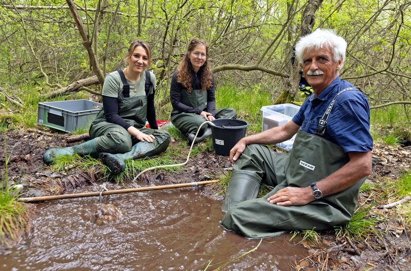 Vulkanausbrüche in Deutschland? An manchen Stellen tritt Gas in kleinen Tümpeln aus dem Erdinneren heraus. Jasmina Neudecker will wissen, wie groß die Gefahr wirklich ist. Die Zusammensetzung der Gase gibt Hinweise. Unterstützt wird sie von Bettina Strauch und Martin Zimmer vom GeoForschungsZentrum GFZ.