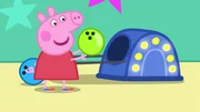 Opa Wutz und Opa Kläff nehmen Peppa, Schorsch und Klausi mit auf die Bowlingbahn von Frau Mümmel.