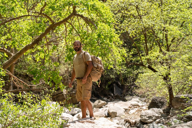 Hazen steht am Fuß des Grats nach einem Abstieg über die Riftlinie. (National Geographic für Disney/Tess Benjamin)
