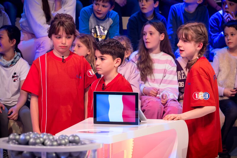 • Das rote Rateteam aus Fontainebleau/Frankreich grübelt über eine von Eltons kniffligen Fragen.