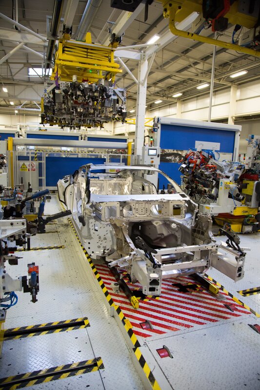 A partially completed DBS Superleggera moving from one station to the next.