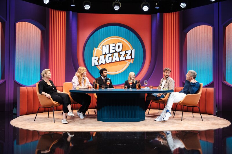 Sophie Passmann und Tommi Schmitt mit ihren Gästen in ZDFneo-Sendung "Neo Ragazzi"