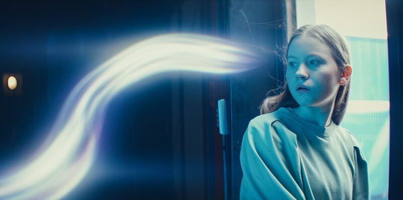 Kaz (Maiya Silveston, h.l.), Louis (Oliver Cunliffe, h.M.) und Glen (Krish Misra, h.r.) sind durch eine zweite Luke im Raumschiff in die virtuelle Welt von Jays (Noah Manzoor, v.l.) Erdrutsch-Gruppe gelangt. Jay will unbedingt wissen, wer der Anführer oder die Anführerin der Libellen-Gruppe ist. Und fordert sie gemeinsam mit Dev (Kalli Tant, v.r.) heraus.