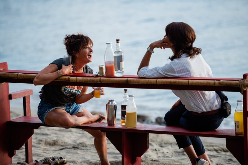 Mélissa (Sonia Rolland, r.) und Gaëlle (Béatrice de la Boulaye, l.) verschaffen sich illegal Zugang zu einer Strandbar und verbringen dort einen ausgelassenen Abend miteinander.