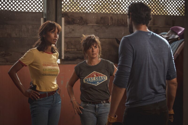 Auf dem Reiterhof treffen Mélissa (Sonia Rolland, l.) und Gaëlle (Béatrice de la Boulaye, M.) auf ihren Kollegen Stany Coppet (Cyril Aubrun, r.), der dort undercover ermittelt und sie über die laufenden Untersuchungen informiert.