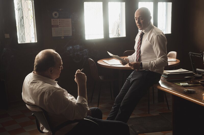 Kommissar Alain Etcheverry (Stéphan Wojtowicz, l.) verteidigt Mélissa energisch in einem Gespräch mit Kommandant Eider (Jean-François Cayrey, r.) von der Dienstaufsichtsbehörde und ist von ihrer Unschuld überzeugt.