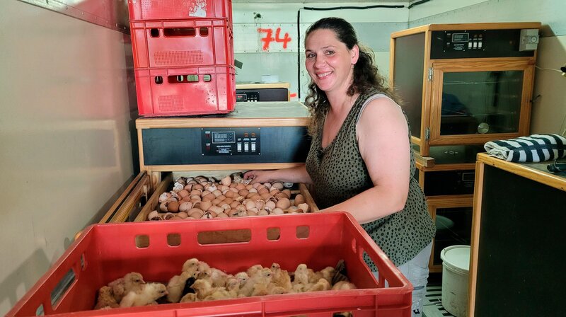 Auf ihrer Alm macht Nina vom Gschwandtnerhof in Bayern mit Senner Flori Käse aus der frischen Milch ihrer Kühe, die hier oben den Sommer verbringen. Dabei ist die Chefin aber nur Hilfskraft und merkt schnell: Es ist noch kein Käser vom Himmel gefallen. Nachdem es seit Wochen nur regnet, hat Jonas keine andere Wahl. Er muss den Dinkel ernten. Im Regen fährt er den Mähdrescher schon mal aufs Feld. Es muss dieses Mal klappen, denn sonst ist die gesamte Ernte futsch. Bei Christine Bremer schlüpfen mehr als 2000 Hühnerküken, die gezählt, untersucht und eingestallt werden müssen. Sich aus dem Ei zu pellen, ist für die Kleinen eine riesige Anstrengung. Aber Christine weiß, wie sie müde Küken munter macht. Auf dem Spreewaldhof hat Praktikant Felix aus Berlin sein Freiwilliges Ökologisches Jahr begonnen. Zum Glück für Bauer Sebastian Kilka, der längere Zeit sehr krank war und nun dringend Hilfe gebrauchen kann. Denn bei den Schweinen gibt es Nachwuchs. Die kleinen Ferkel büxen immer wieder aus und müssen eingefangen werden. Auf dem Hof ist viel liegen geblieben. Und auch an diesem Tag gibt es eine Zwangspause. Die Sirene heult und Sebastian muss als freiwilliger Feuerwehrmann sofort los. Für den Windberghof steht der wöchentliche Markt in St. Blasien an. Dann heißt es für Martina und Holger Albrecht: runter vom Einsiedlerhof, mitten rein in die touristische Schwarzwaldstadt. Weil die beiden möglichst viel ohne Motorkraft machen möchten, fahren sie mit dem Rad ins Tal: zweieinhalb Kilometer und 100 Höhenmeter über die Schotterpiste. Eine schweißtreibende Angelegenheit. Auf dem Hof von Ludger Bremehr in Ostwestfalen geht es hoch hinaus: das Storchennest auf dem Dach muss gereinigt werden. Störche bauen hier jedes Jahr an ihrem Nest weiter, doch das wird irgendwann zu schwer fürs Dach. Die Söhne Lorenz und Alexander übernehmen den schweißtreibenden Job zum ersten Mal und wagen sich in luftige Höhe. "Hofgeschichten - Ackern zwischen Alpen und Ostsee" ist eine Gemeinschaftsproduktion von BR, MDR, NDR, rbb, SWR und WDR für die ARD.