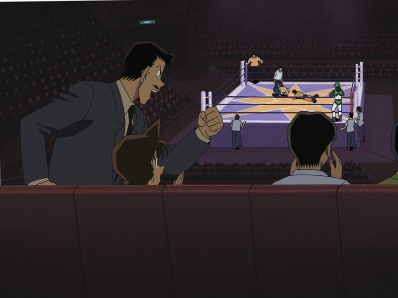 Kogoro wird zu einem Boxkampf eingeladen, bei dem der Wrestling-Star Wolfface seinen Titel verteidigen soll. Das Markenzeichen des Ringers ist eine Wolfsmaske, die er noch nie abgenommen hat. Und doch offenbart er sich den Moris und ist sehr freundlich. Als sein Gegner dann ermordet aufgefunden wird, fällt der Verdacht sofort auf Conans neuen Freund. Der Detektiv traut dem Offensichtlichen nicht.