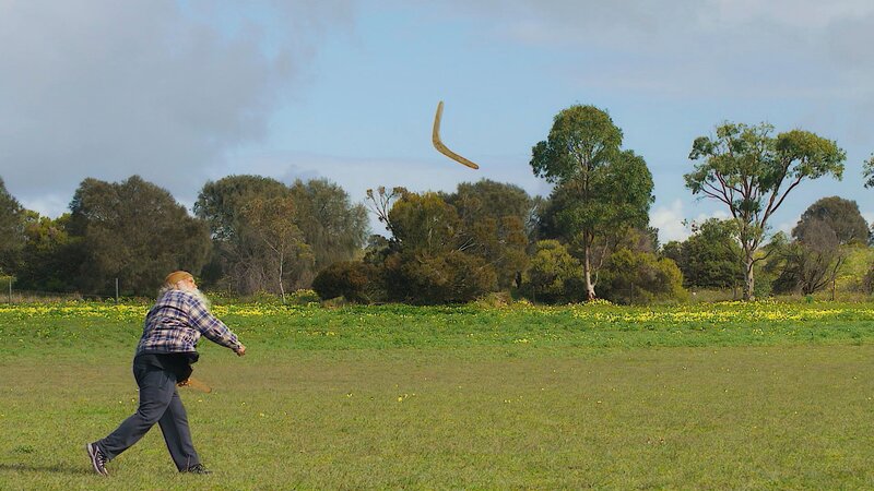 Der Mann warf den Bumerang