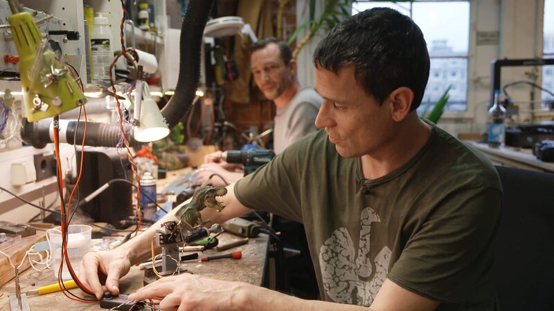 Ein in einem Schiff versteckter T-Rex soll Besucher erschrecken. Dafür haben sich die Tüftler einige Raffinessen einfallen lassen.