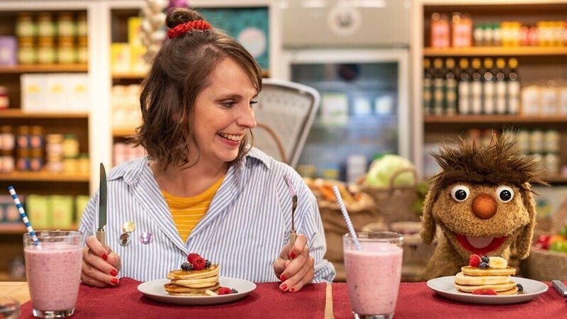 Mayas Pfannkuchen sind so himmlisch locker und leicht, dass sie einfach in Moppis Mund fliegen. Da kann er nun wirklich nichts dafür. Fluffis eben!