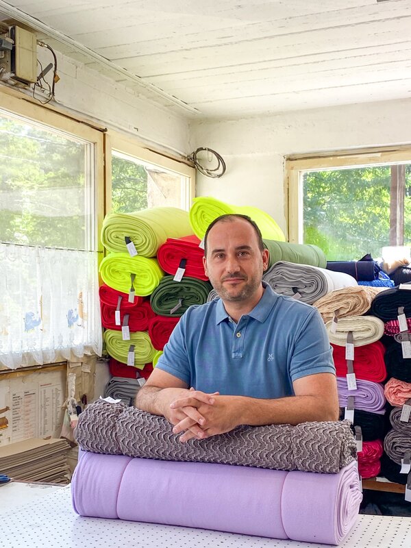 • Adnan Beslagic, GF Textil Müller beim Bepreisen der eingekauften Stoffe.