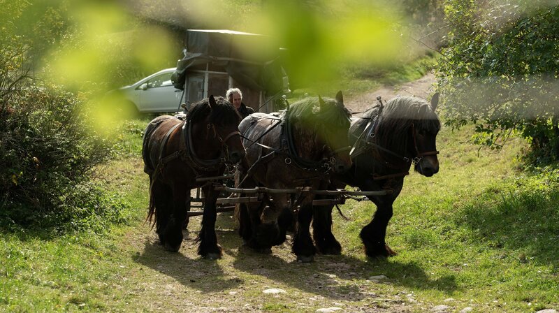 Auf Hof Bremehr in der Nähe von Gütersloh leben die unterschiedlichsten Tiere. Darunter auch seltene Arten wie Lamas und Alpakas. Elisabeth Bremehr kümmert sich um die Baby-Alpakas, die noch mit der Flasche gefüttert werden. Ludger Bremehr um die beiden Lamas, die geschoren werden müssen. Und das erste Mal greift er selbst zur Schere. Mira macht sich auf die Suche nach den sogenannten Trockenstehern, das sind Ziegen, die keine Milch geben. Die Tiere haben den ganzen Sommer auf einer abgeschiedenen Weide verbracht und sind es nicht mehr gewöhnt, in den Stall getrieben zu werden. Daher braucht Mira Verstärkung. Auf dem Kratzerhof in Zolling in Oberbayern steht die letzte Ernte des Jahres an: die Kartoffeln müssen raus. Dafür haben die Landwirte Sepp und Nicki Hanrieder die ganze Familie, viele Freunde und Helfer zusammengetrommelt. Das Sagen hat an diesem Tag zum ersten Mal Sohn Max. Doch kaum sind alle auf dem Acker, streikt die Erntemaschine. Der Vater des Inselbauern Mathias ist zu Besuch. Er möchte sein altes Eichenholzboot, mit dem er schon als Kind zwischen der Öhe und Rügen hin und her gerudert ist, zu Wasser lassen. Auf alten Fotos zeigt der Senior, wie es damals üblich war, den voll bepackten Kahn mit nur einem Ruder zu steuern. Mathias konnte das nie. Jetzt soll Enkeltochter Lotti die alte Rudertechnik erlernen. Und schon wriggen Großvater und Enkelin Richtung Hiddensee. Auf dem Spreewaldhof soll der Bulle geschlachtet werden. Dafür holt Sebastian Kilka die Rinder von der Sommerweide zurück auf den Hof. Eigentlich braucht er nur den Schlachtbullen, aber inmitten seiner Herde ist das Tier ruhiger. Mehrmals fährt der Biobauer die Tiere mit seinem großen Kahn über das Fließ, bis fast alle auf dem Hof sind. Plötzlich brechen die Mutterkühe aus, die ihre Kälbchen suchen. Erst als alle wieder beisammen sind, kann geschlachtet werden. Auf dem Windberghof im Südschwarzwald beginnt die Mistsaison. Der kommt als Dünger auf die Felder und Wiesen im Tal. Bei den Albrechts auf eine ungewöhnliche Art und Weise: Sie düngen mit dem Dreispänner. Drei Kaltblüter, das ist ein beeindruckendes Bild, aber nicht ungefährlich. "Hofgeschichten - Ackern zwischen Alpen und Ostsee" ist eine Gemeinschaftsproduktion von BR, MDR, NDR, rbb, SWR und WDR für die ARD.