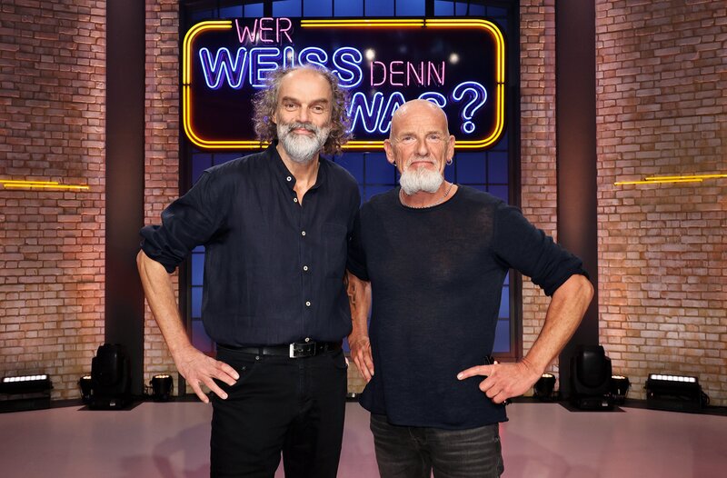 Treten bei "Wer weiß denn sowas?" als Kandidaten an: Die beiden Musiker und Mitglieder der "Shanty Rock"-Band "Santiano", Hans‑Timm Hinrichsen (l.) und Björn Both (r.).Bild: © ARD/Morris Mac Matzen