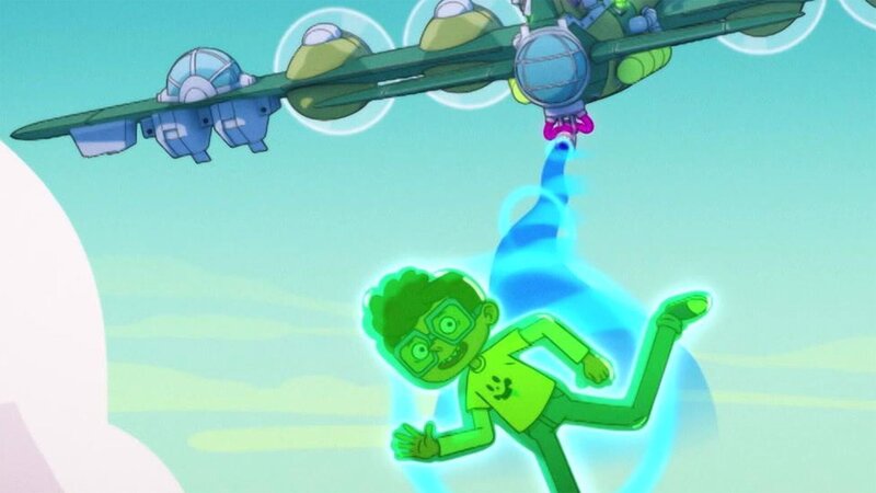 Edie ist dabei, den Umgang mit der Zeitschleim-Kanone zu lernen, als Ernest unvermittelt angelaufen kommt. Er bekommt eine volle Ladung Zeitschleim ab und ist nun vorläufig in Raum und Zeit eingefroren.