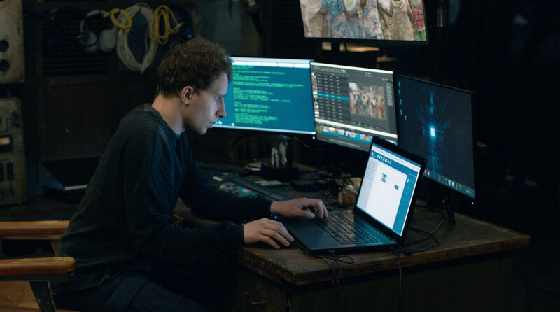 Victor (Jonathan Berlin) arbeitet an einem Enthüllungsvideo über die Machenschaft des BSK-Konzerns.