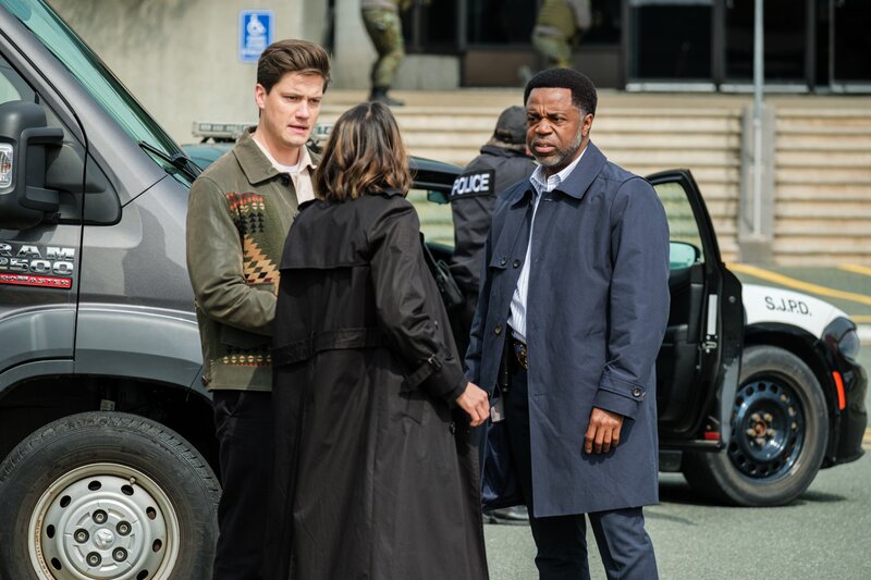 Rex (DIESEL VOM BURGIMWALD) bringt den Handy-Jammer nach draußen zu Sarah (MAYKO NGUYEN) und dem Team.