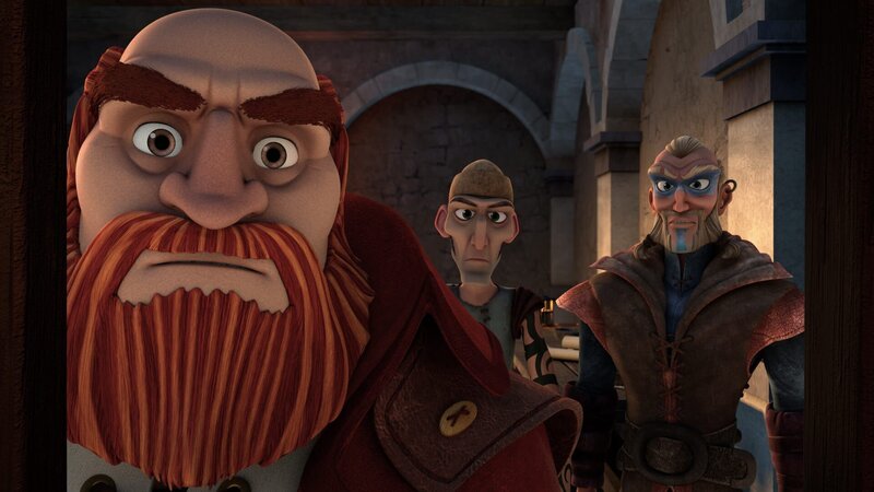 Der rote Pirat (vorne), Sicario (Mitte) und Azzuro (rechts) können nicht glauben, dass die anderen Piraten aus dem Gefängnis entkommen konnten.