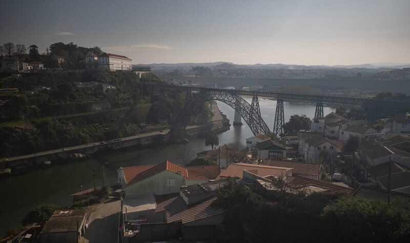 Portugal - Old Railway bridge in Porto 'Ponte de Dona Maria Pia' Built 1877 by Gustave Eiffel.