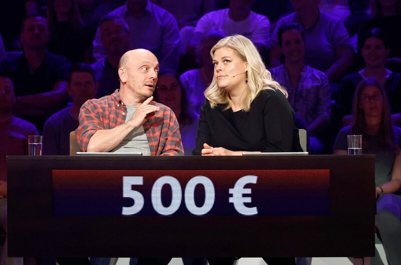Rateteam-Kapitän Bernhard Hoëcker (l.) mit der Schauspielerin Marie Schöneburg (r.)Bild: © ARD/Morris Mac Matzen