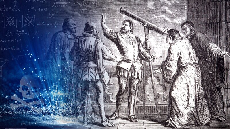 Galileo Galilei, Giordano Bruno und Hypatia von Alexandria stellten das Weltbild ihrer Zeit in Frage. Galileo und Bruno gerieten durch ihre Entdeckungen mit der Kirche in Konflikt. Hypatia wurde aufgrund politischer Umstände ermordet.