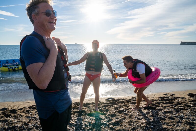 Fred Sirieix (l.), Gino D'Acampo und Gordon Ramsay (r.).