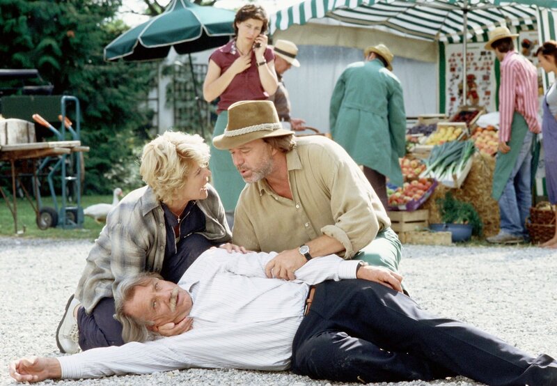 • Carl Ludwig (Franz Buchrieser, liegend) ist nach einem Herzanfall zusammen gebrochen. Rudolf (Gerd Silberbauer) und Jona (Christiane Hörbiger) wissen, dass jede Sekunde zählt.