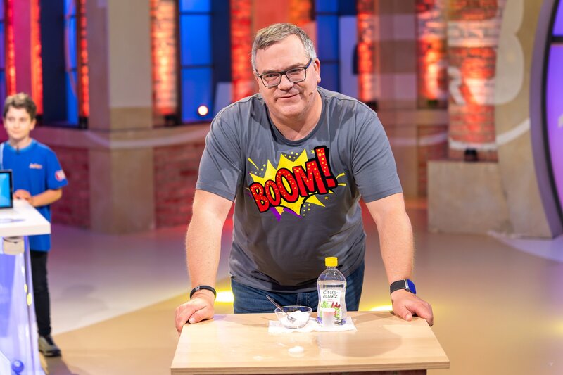 Elton lässt's krachen: Die Quizshow für die ganze Familie. "1, 2 oder 3" vermittelt Wissen auf unterhaltsame und spielerische Weise. Helle Köpfe sind gefragt und auch flinke Beine. Denn die Rateteams geben ihre Antworten durch das Springen auf eines der Antwortfelder. Bei Elton geht es diesmal um Explosionen. Und deshalb hat er auch jede Menge echte Kracher in petto. Essig, Backpulver, und wen wundert's: Selbst Weihnachtsbäume können explodieren. Reporterkind Laura war beim König der Knalleffekte zu Gast: bei "Checkpoint"-Moderator Tommy Scheel. Bei den Dreharbeiten hat sie gelernt, wie man durch filmische Spezialeffekte Explosionen noch eindrucksvoller gestalten kann. Aber bitte nicht nachmachen! Im Studio zeigt Tommy Scheel Elton, was man Explosives mit Milchpulver machen kann und wie man einen Staubsauger zur Kanone umfunktioniert. Besondere Aufmerksamkeit verdient auch die von Tommy und Elton hergestellte Elefantenzahnpasta. Auf tolle Experimente können sich die Rateteams aus Deutschland, Österreich und einem Gastland freuen. Bei "1, 2 oder 3" können die Fans zu Hause über HbbTV live mitspielen, und bereits ausgestrahlte Sendungen lassen sich auch online über 12oder3.de oder die ZDFtivi-App beim Videoquiz nachspielen. Wer noch nicht genug hat, kann im Zockerquiz quizzen ohne Ende. Für Vorschulkinder gibt es auf zdftivi.de und in der ZDFtivi-App das Angebot "Moin Piet - Quiz mit Quatsch".