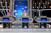 Moderatorin Esther Sedlaczek mit den Kandidaten des Teams "Comedy": Michael Mittermaier und Paul Panzer und Quiz-Ass Thorsten Zirkel.